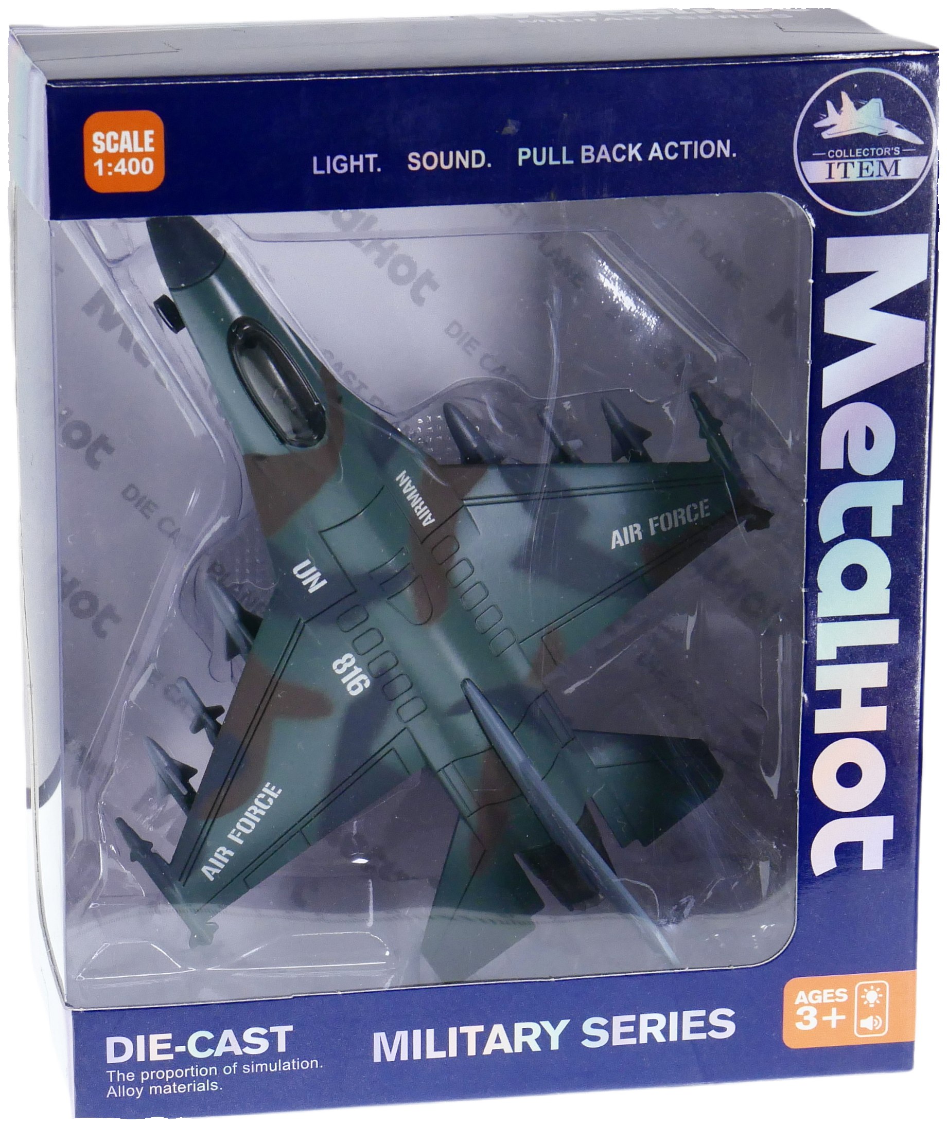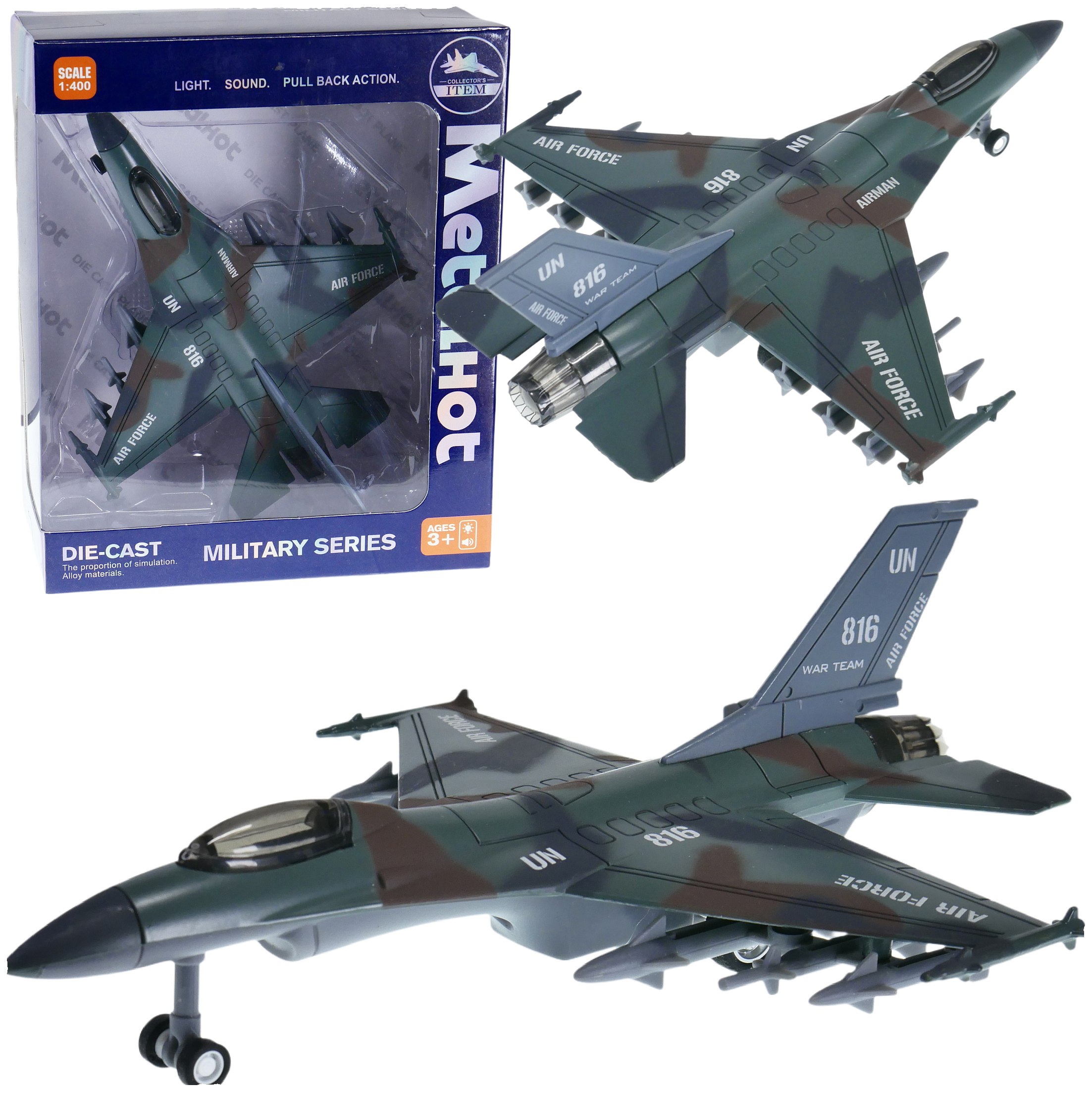 samolot metalowy światło i dźwięk F-16 w pudełku
