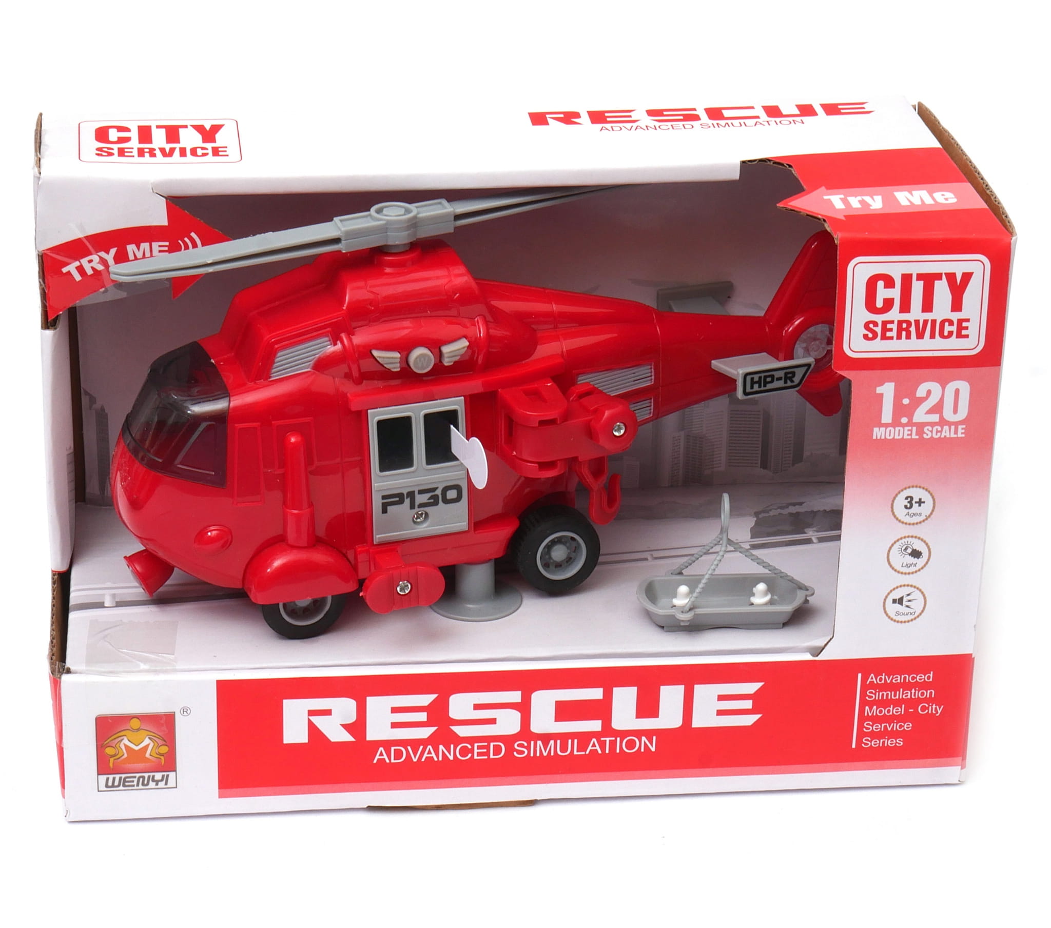 Duży helikopter policyjny. Wyposażony jest w podnośnik i nosze. Na boku śmigłowca znajdują się trzy przyciski włączające dźwięk i światła - czerwone na ogonie i białe w szperaczu. Śmigła można wprowadzić w ruch przyciskając na biały przycisk z boku helikoptera. Model został wyposażony w napęd zamachowy z gumowymi oponami.