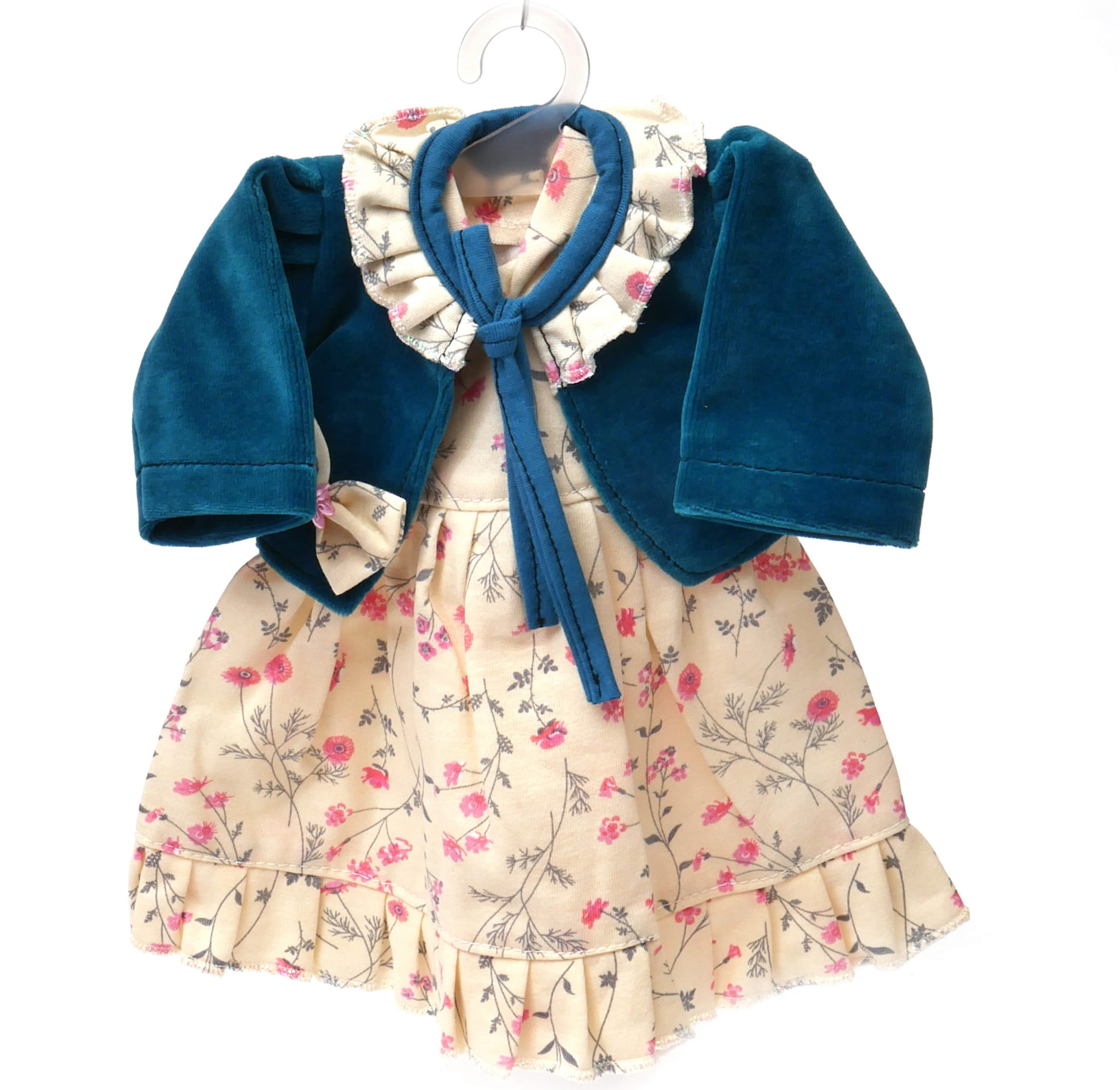 sukienka ecru z zielonym bolerkiem dla lalki 36-43cm