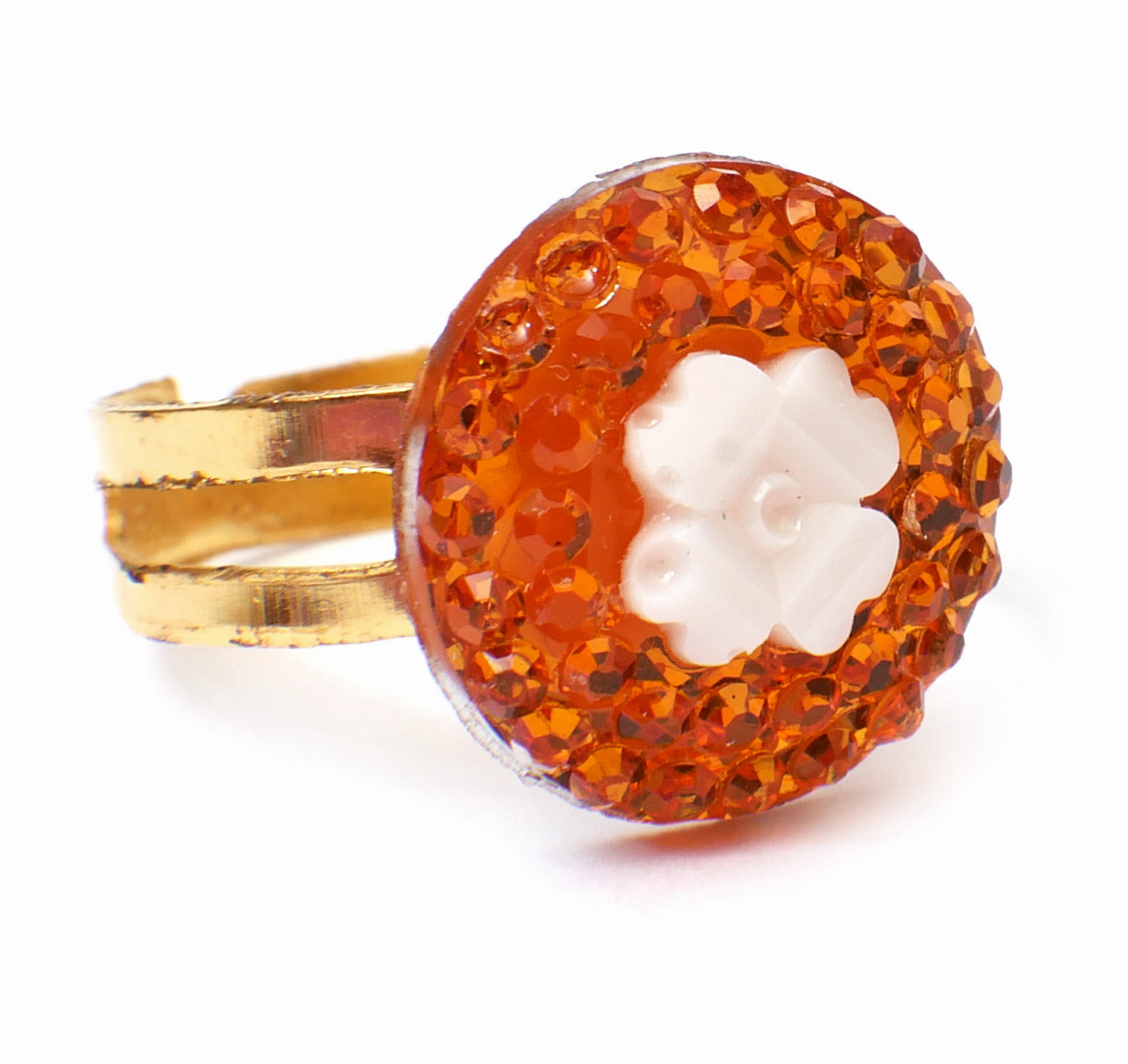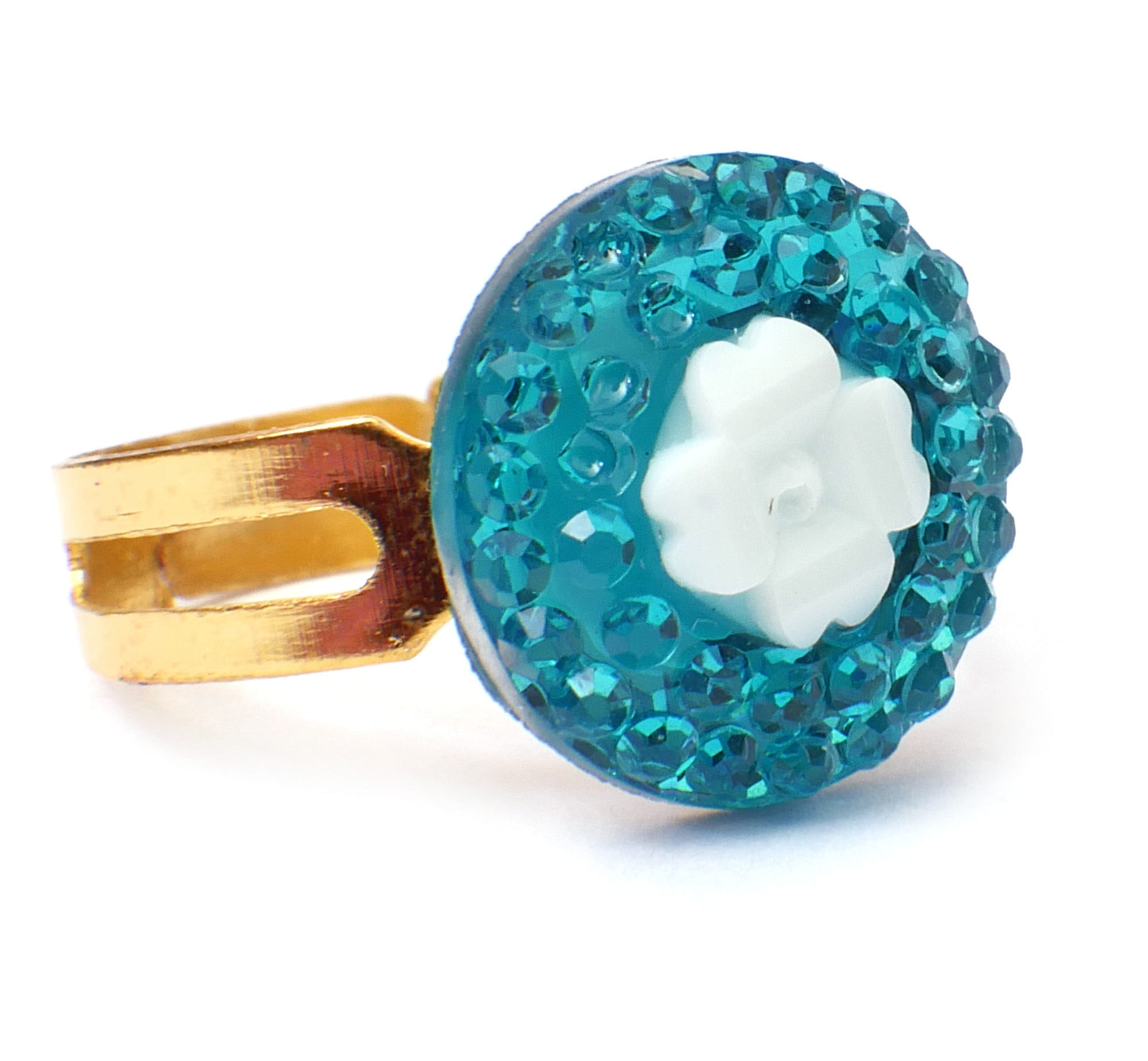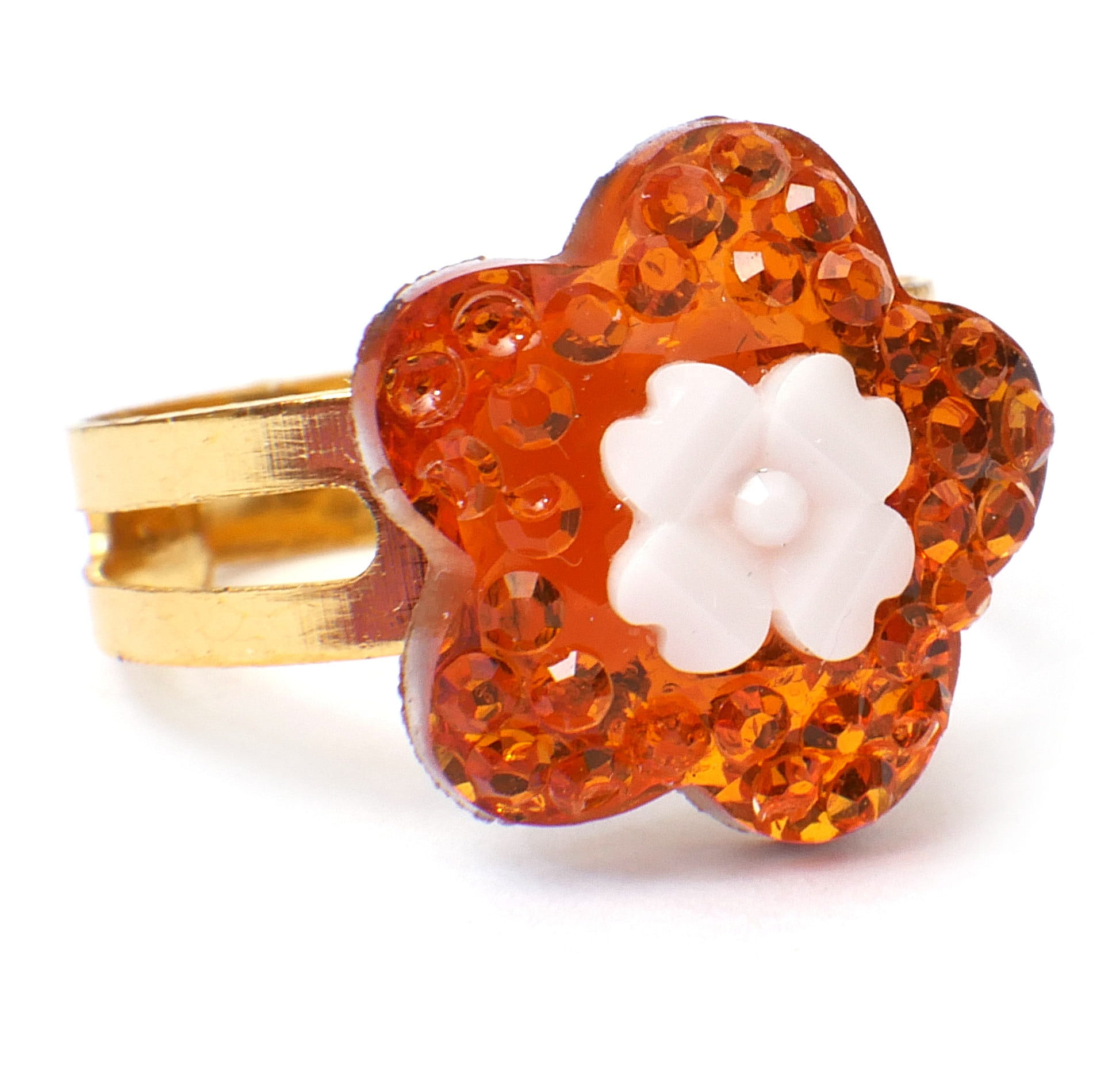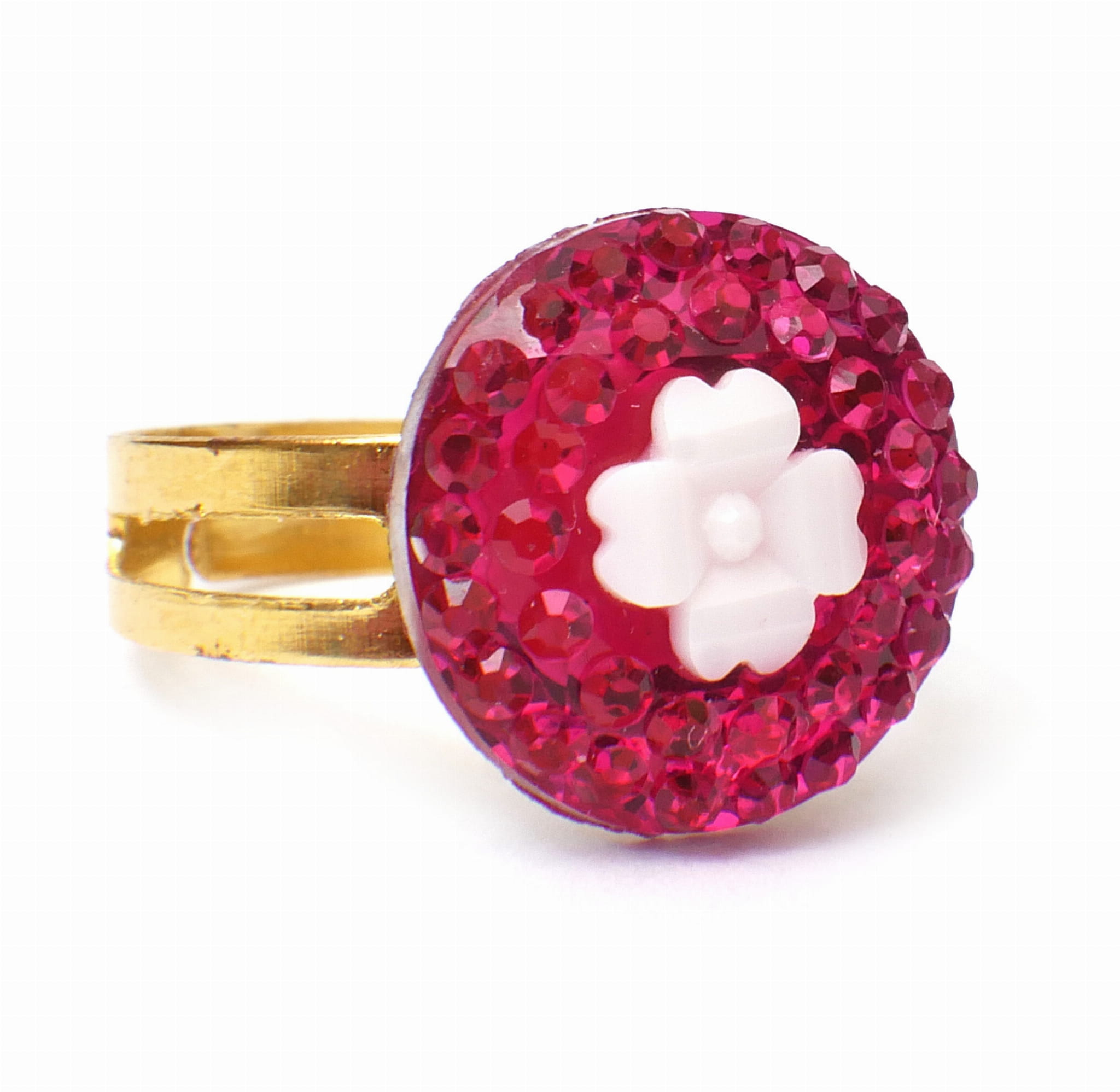 Śliczne pierścionki księżniczki. Wszystkie mają różnokolorowe sztuczne kamienie w kształtach serc, kwiatek, kropelki i kółka. Obrączka pierścionka jest nacięta, co sprawia, że jej rozmiar jest uniwersalny.