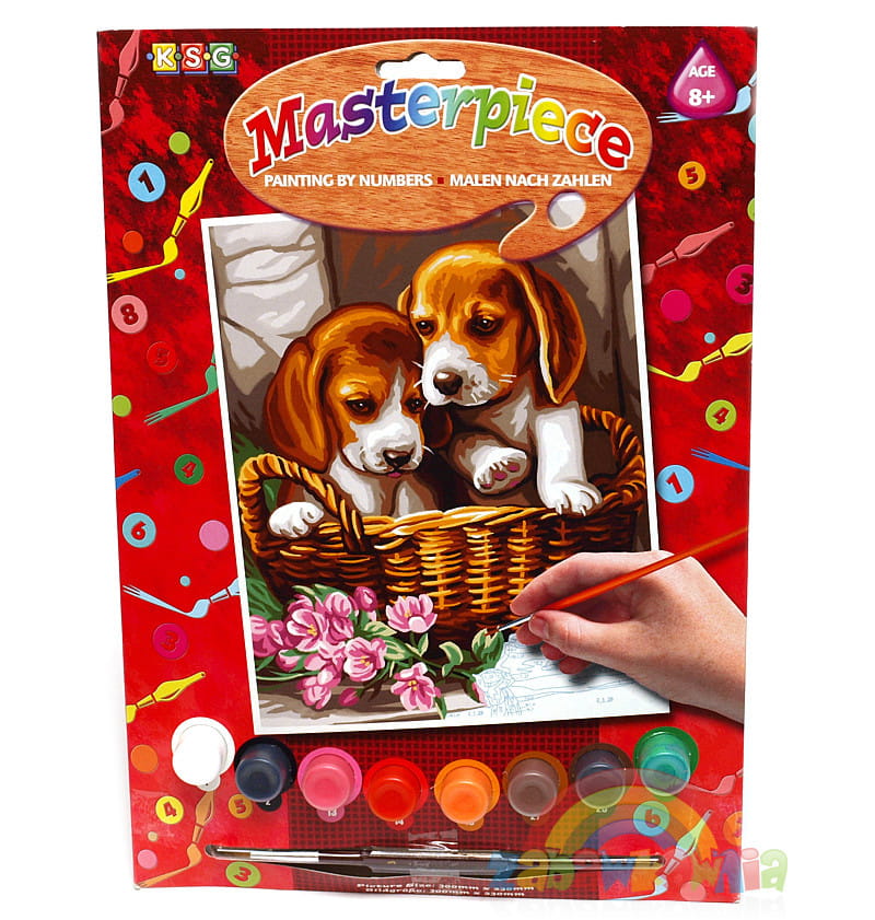 PAINTING BY NUMBERS Junior - Pieski w koszu
