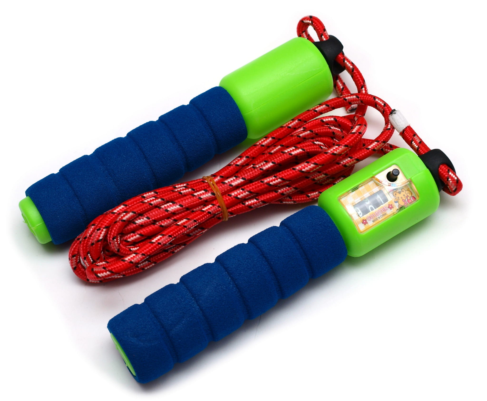 Świetnie wykonana skakanka nie tylko do zabawy ponieważ została wyposażona w licznik z przyciskiem do resetu. Dzięki takiemu rozwiązaniu mamy możliwość kontroli nad ilością wykonanych podskoków.