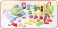 Sklep ma dużą ilość artykułów do zabawy: warzywa, pieniądze i artykuły spożywcze.