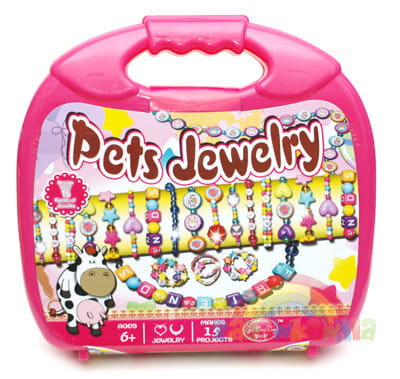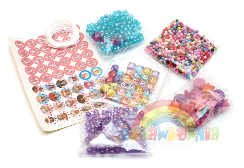 Zestaw składa się z dużej ilości koralików i ozdób, które nanizane na linkę tworzą oryginalne naszyjniki, korale i bransoletki. Są koraliki z literkami, z których można układać napisy. Możesz wykonać ozdobę z imieniem przyjaciółki, którą chcesz obdarować. To będzie niepowtarzalny prezent. W zestawie znajdują się naklejki, które można naklejać na okrągłe ozdoby. Zestaw pozwala dziewczynką na zabawę kreatywną, która rozwinie u nich zdolności plastyczne i rozwinie wyobraźnię.